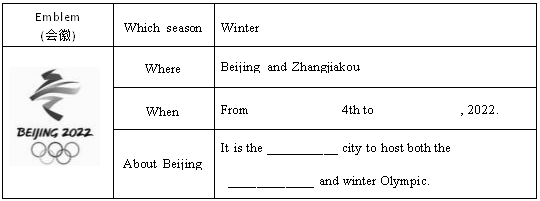 ( ) 2. It is held(举行) in Beijing and Zhangjiakou.