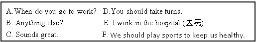 十、从方框中选择合适的句子补全对话,将字母标号填在横线处。(每小题2分,共10分)