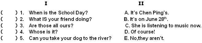 九、从下面II栏中选出与I栏相符的答语。(5 分)