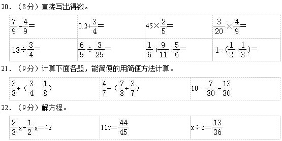 三、计算。(共26分)