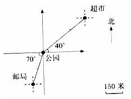 (2)学校在公园西偏北30°的方向上,距离公园150米,请在图中画出学校的位置。