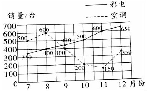 (2) 月彩电和空调的销售量相差最小; 月彩电和空调的销售量相差最大。