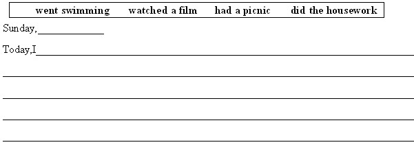 Last Sunday, I 1. _______ a good time. I 2._______ up very early. I 3.________ to Lily’s home. There 4. _______ a party at Lily’s home. Jenny and her friends 5._______ some drinks. We played 6. ________. 7.________ about five o’clock, the weather 8.________ 9. ________. We had to 10.________ home.