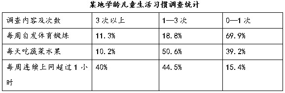 1.①该地学龄儿童每周上网时间远远多于体育锻炼的时间;