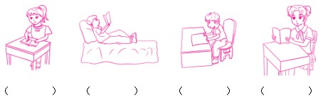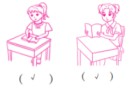 八、看一看,下面的小朋友读书、写字的姿势正确吗?在正确的下面打“√”。(4分)