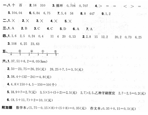 5.甲种牙刷的售价是7支18.9元,乙种牙刷的售价是每支3.5元,买5支赠2支。如果买7支牙刷,那么哪种牙刷的单价便宜?每支便宜多少元?