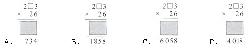 10.(2分)下面是四个同学计算“2□3×26”的竖式,中间的乘积给遮住了,正确的是( )