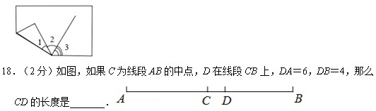 17.(2分)如图,是一张长方形纸折起一个角。已知∠1=30°,∠2=∠3,则∠2= 度。