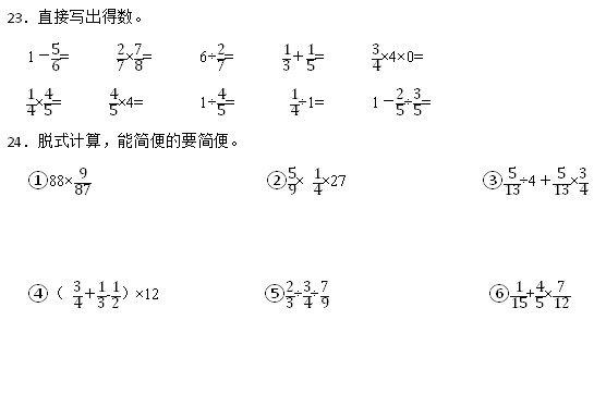 6.两个三角形高的比是1∶3,底的比是5∶3,那么这两个三角形面积的比是( )。