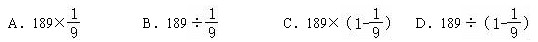 12.(2分)“张叔叔家九月份的电费是189元,十月份的电费比九月份减少了。张叔叔家十月份的电费比九月份减少了多少元?”下面算式正确的是( )