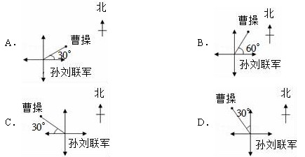 14.(2分)赤壁之战时,曹操军队在孙刘联军的西偏北30°方向上,下图中正确的是( )