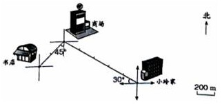 ①小玲从家出发去书店,先向 °方向行走 米到达商场;再向 °方向行走 米到达书店。