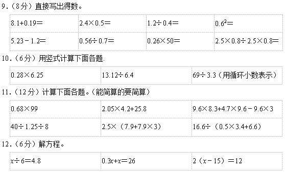 1.(1分)如果0.98×A<0.98,则A与1的大小关系式( )