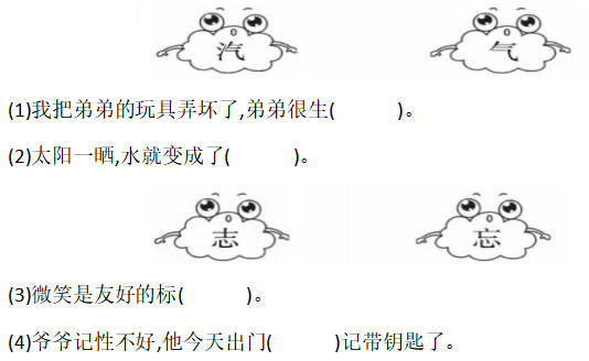 【解析】“气”和“汽”是同音字,都读 qì,“汽”和水有关,如汽水、汽油,“气”和气体有关,如煤气、叹气。