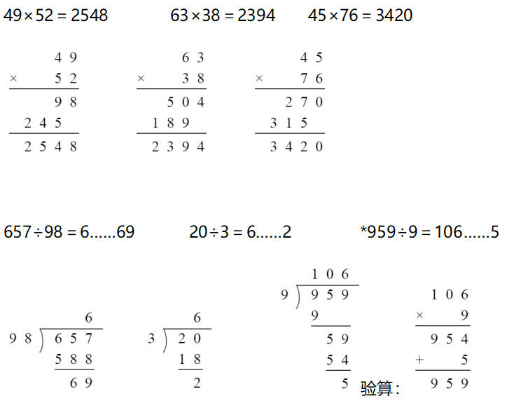 657÷98= 20÷3= *959÷9=