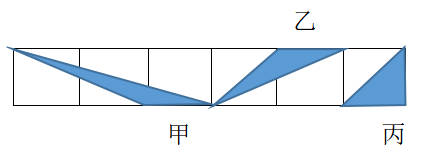 7、六个边长相等的正方形中,有甲、乙、丙三个三角形,其面积比较的结果是( )。