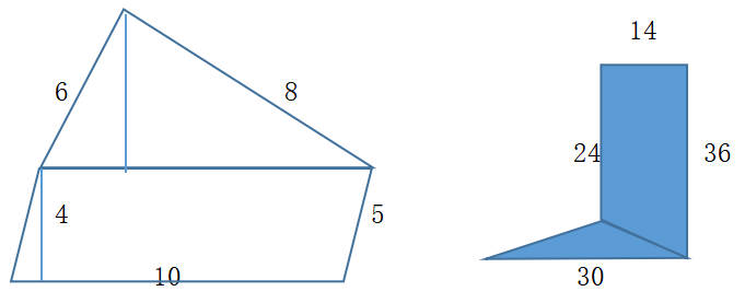 2、14×24+( 30+14) × (36-24) ÷2=600( cm2)