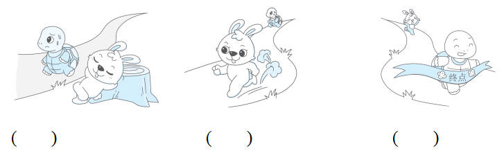 听家人讲《龟兔赛跑》的故事,根据故事情节,给下面的图片排序。(3分)