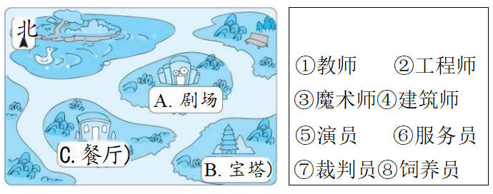 四、读下面的导览图,选择合适的职业填空。(填序号)(10分)