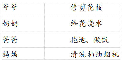 饭菜做好了,元元喊:“爷爷奶奶,爸爸妈妈,吃饭喽!”