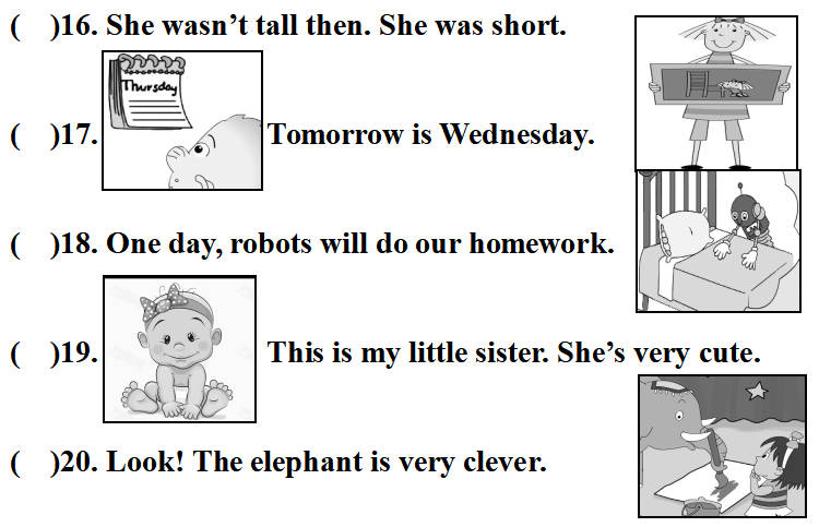 Ⅳ.(16 -20)读一读,用“√”或“×”判断图片与句子内容是否相符。