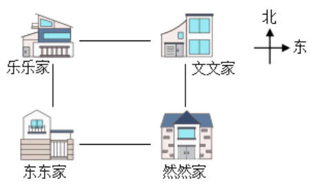 文文家的南面是( )家,西南方向是( )家,乐乐家在然然家的( )方向,在东东家的( )面。