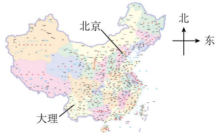 7.如图中,大理大致在北京的( )方向。