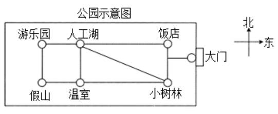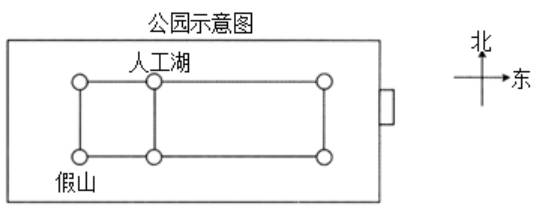 (2)温室在人工湖的南面,小树林在温室的东面,小树林的北面是饭店。