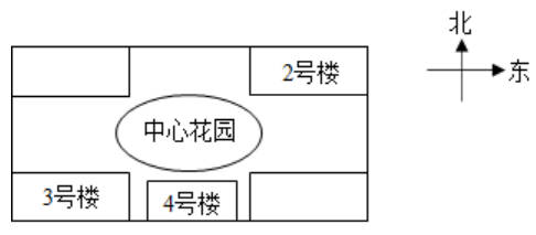(1)中心花园的( )面是4号楼,2号楼在中心花园的( )方向。