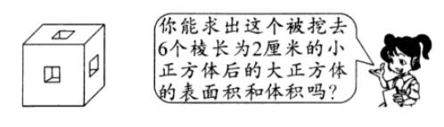 下图是棱长为8厘米的大正方体,在它的每个面的正中间分别挖去一个棱长为2 厘米的小正方体。