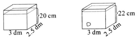 4.一个长方体容器从里面量得长3dm,宽2.5dm,里面装有适量的水,水深20cm,把一个小铁块浸没在水中,这时测得水深22cm,这个铁块的体积是多少?(8分)