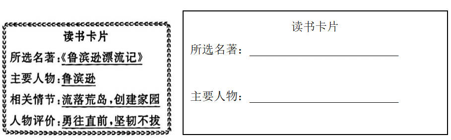 (3)每一部名著都是独一无二的花朵。选择一部名著,照样子,完成读书卡片。