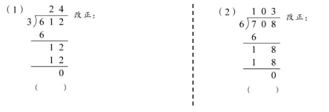 2.下面的计算对吗?对的画“√”,错的画“×”,并改正。(6分)