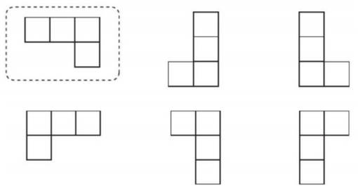 3.左边的图形在平面上旋转后,会和右边哪个图形的形状相同?请给它图上颜色。(6分)
