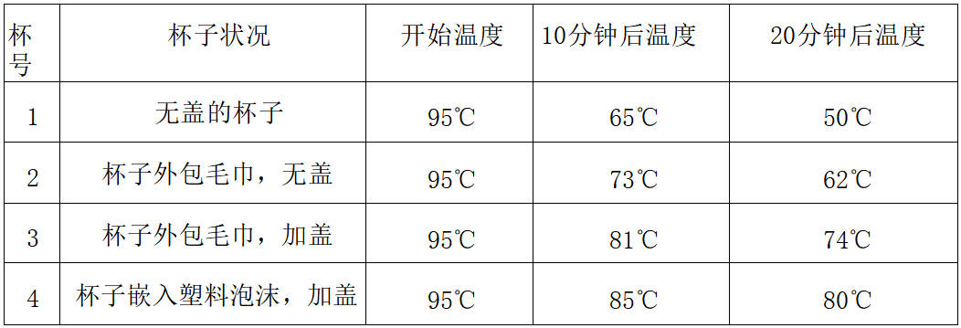 下面是杯子的保温效果实验记录表。请根据表格内容回答相关问题。