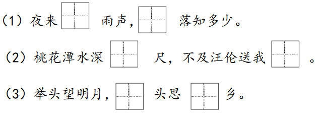 床前(chuánɡ chuán) 落下 ( luò lùo) 忘记(wàn wàng)