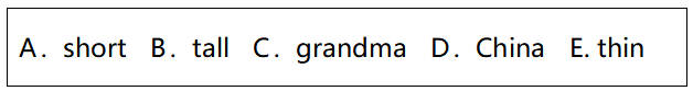 44.句意:我很______。A瘦的,B高的,C矮的,根据“I’m from China. I’m thin.”,可知“我”很瘦,故选A。