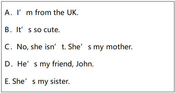 【详解】A他是你哥哥吗?B他是你爸爸吗?本题考查情景交际,题干问是不是朋友的哥哥,故选A。
