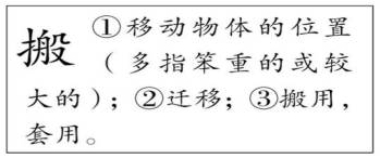 1.“般”字读“bān”,我猜“搬”的读音是_________。通过查字典,我知道了“搬”字在此处的意思是( )。(填序号)
