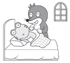 ( )小鼹鼠给小青蛙盖被子。