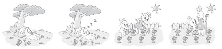 仔细看图,小白兔本来在干什么?后来有了怎样的改变?请你发挥想象,用几句话写一写。